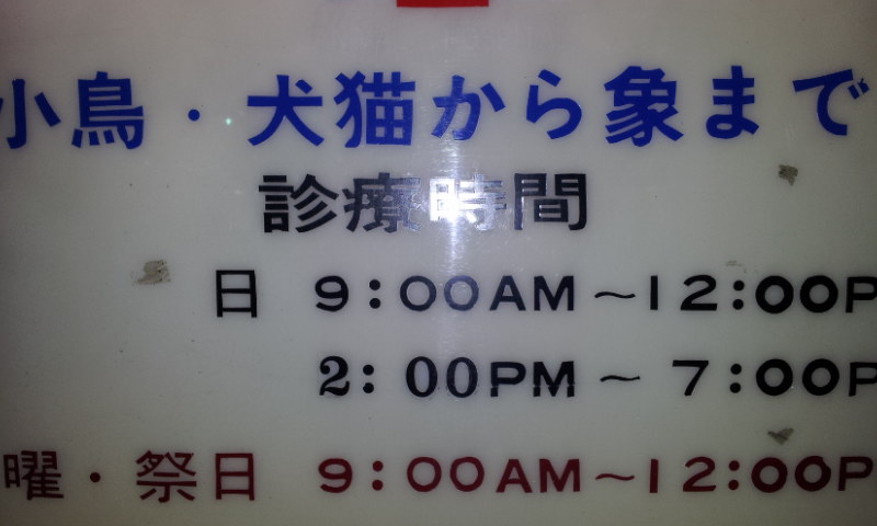 小さい動物病院の前を